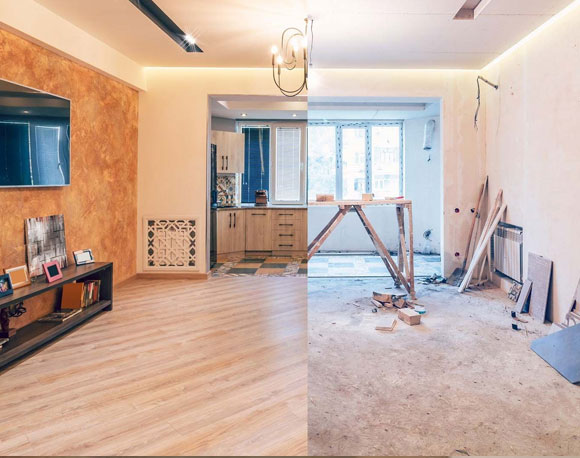 Rediseñamos tus espacios interiores para que reflejen tu personalidad y estilo de vida. Desde la redistribución de espacios hasta la renovación completa de suelos y techos.